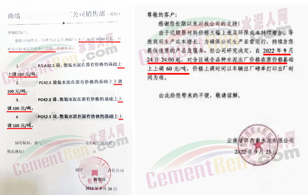 四川部分地區(qū)分別于9月初和9月中下旬兩次各上調(diào)水泥價(jià)格50-60元/噸,兩次累計(jì)上調(diào)100-120元/噸。