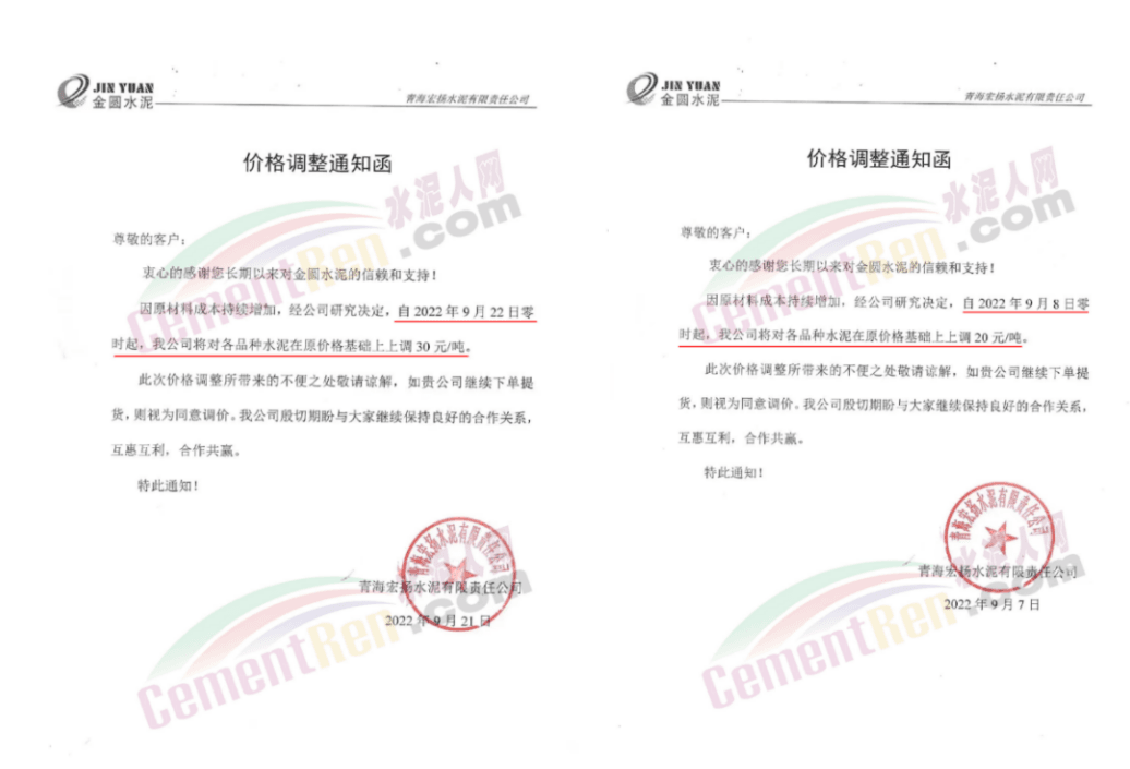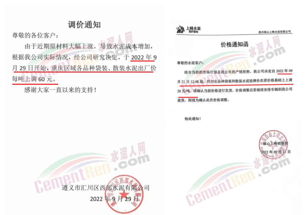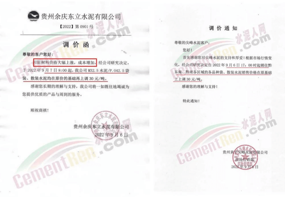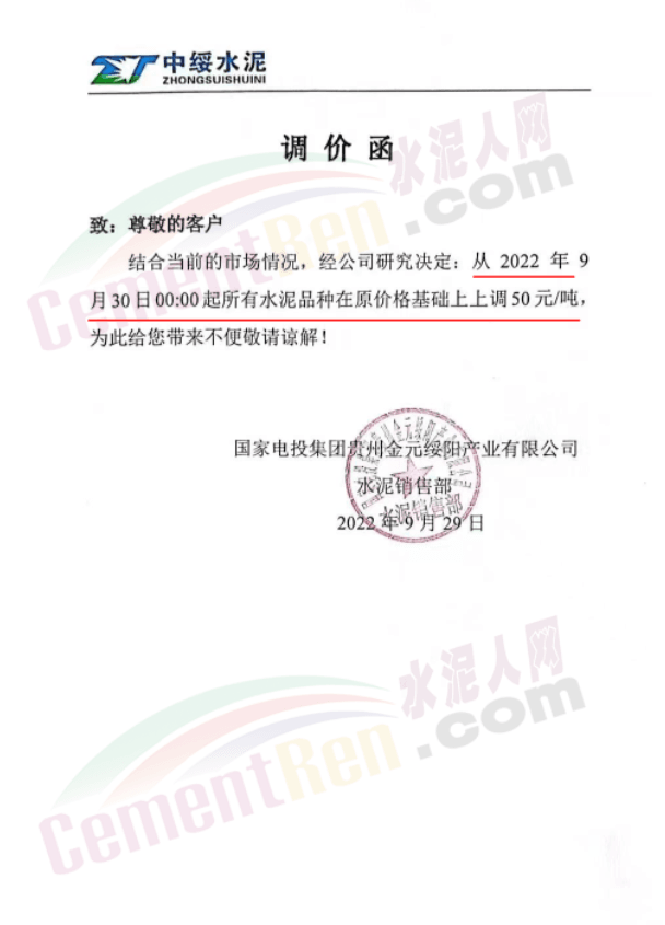 貴州區(qū)域主要品牌企業(yè)通知, 9月7日上調(diào)30元/噸、21日上調(diào)30元/噸、9月30日漲60元/噸,累計(jì)調(diào)漲120元/噸。