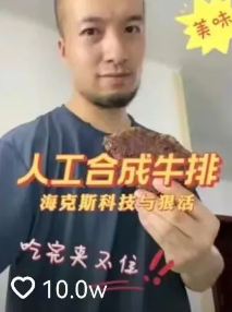 坐擁近800萬(wàn)粉絲的辛吉飛發(fā)布的視頻中,合成食物制作視頻讓人大開(kāi)眼界,你吃的牛不是牛,羊不是羊,雞不是雞,肉不是肉,我們吃的其實(shí)都是化工品。