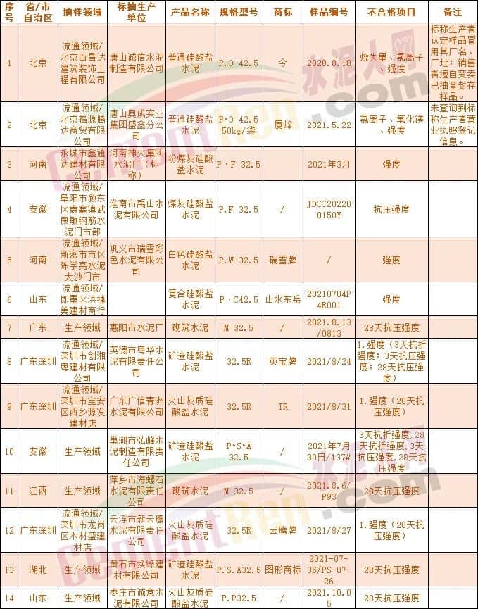 北京市市場(chǎng)監(jiān)督管理局公示:3組批水泥產(chǎn)品不合格,不合格項(xiàng)目涉及氯離子、強(qiáng)度、燒失量