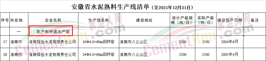 安徽省經(jīng)信廳此前公布的截至2021年底的水泥熟料生產(chǎn)線清單可見,淮南舜岳水泥有限責(zé)任公司兩條2500t/d熟料生產(chǎn)線建成投產(chǎn)時(shí)間分別為2004年和2005年。