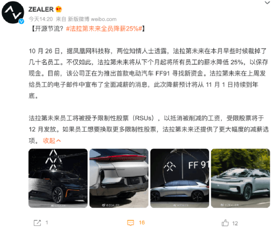 即使是一片火熱的新能源汽車也未能獨(dú)善其身,賈躍亭旗下的新能源汽車公司法拉第未來(lái)由于受到美股、匯率等因素波動(dòng),導(dǎo)致其現(xiàn)金流出現(xiàn)了問(wèn)題。該公司已經(jīng)通過(guò)郵件向全員通知全員降薪25%,以維持公司日常所需現(xiàn)金流。