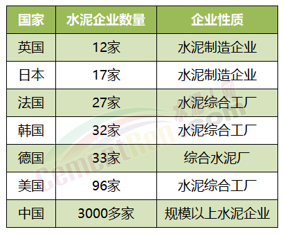 產(chǎn)能利用率方面,今年三季度,全國(guó)工業(yè)產(chǎn)能利用率為75.6%。就水泥行業(yè)而言,北方水泥企業(yè)由于季節(jié)原因和前述政策性原因,產(chǎn)能利用率明顯低于南方水泥企業(yè)。但是隨著下游市場(chǎng)低迷態(tài)勢(shì)持續(xù)南北方的差距或?qū)⒖s小。對(duì)比國(guó)際發(fā)達(dá)國(guó)家擁有的水泥企業(yè)數(shù)量可見(jiàn),未來(lái)或?qū)⑹?ldquo;巨頭企業(yè)”的天下。