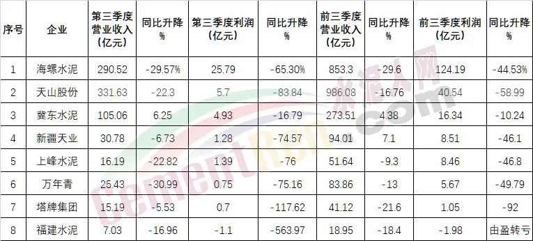 從已披露三季報(bào)的企業(yè)可見,包括上峰水泥、冀東水泥、萬年青、塔牌集團(tuán)、華新水泥、福建水泥等多家企業(yè)第三季度盈利能力均有所下降。