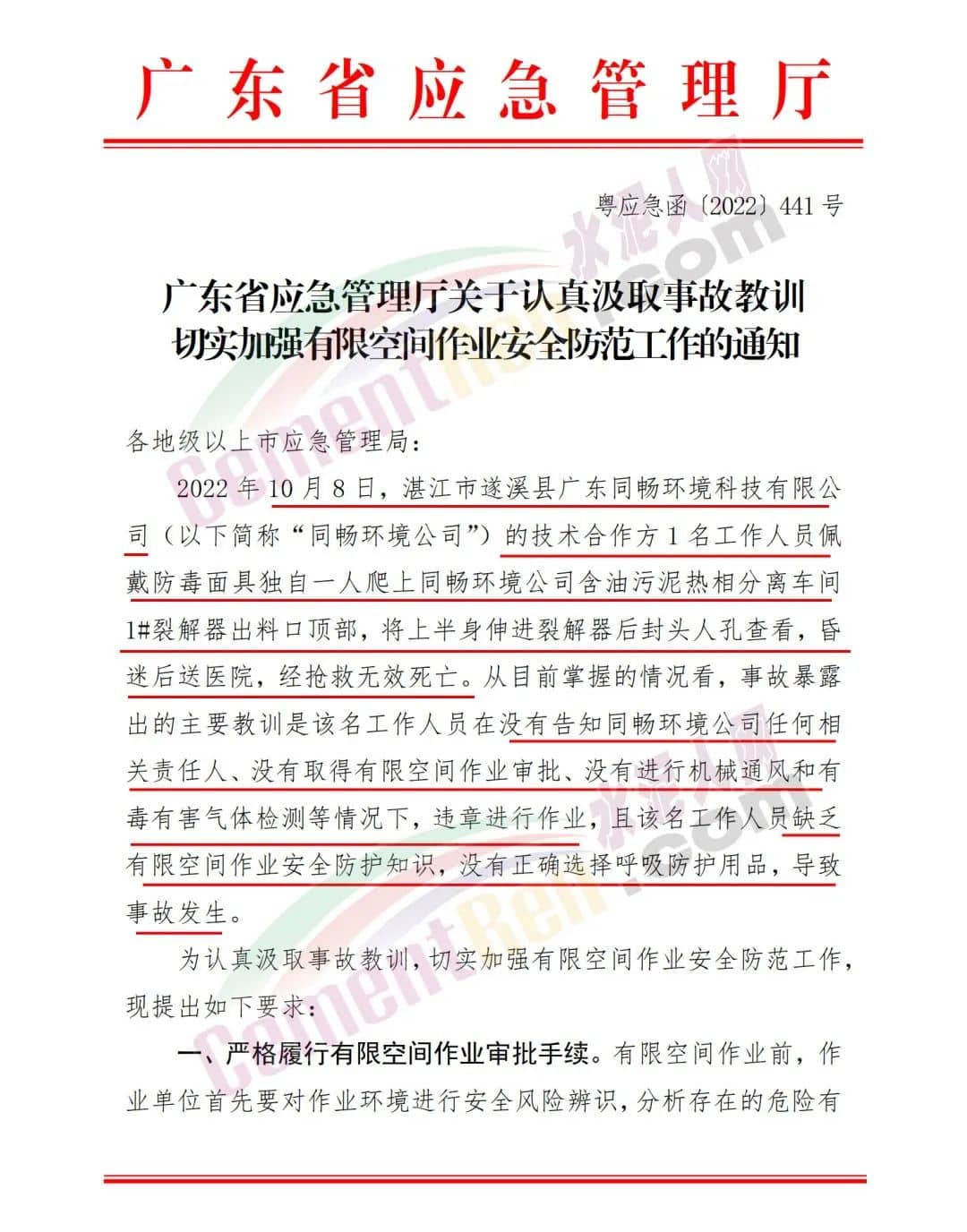 10月20日廣東省應(yīng)急管理廳通報(bào),2022年10月8日,湛江市某環(huán)保公司的合作方員工私自進(jìn)入有限空間,不幸中毒身亡。