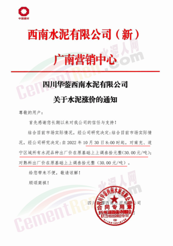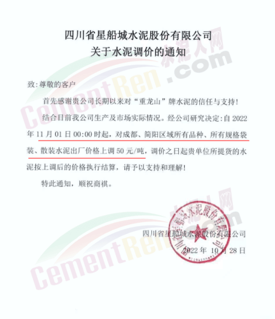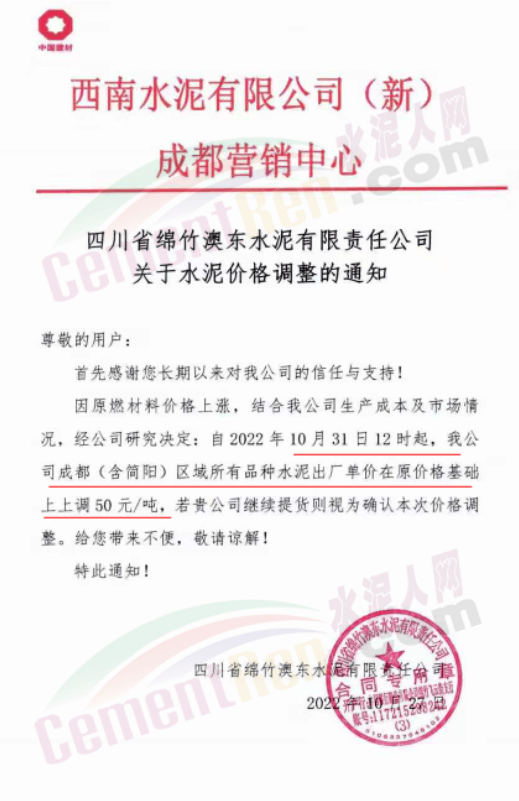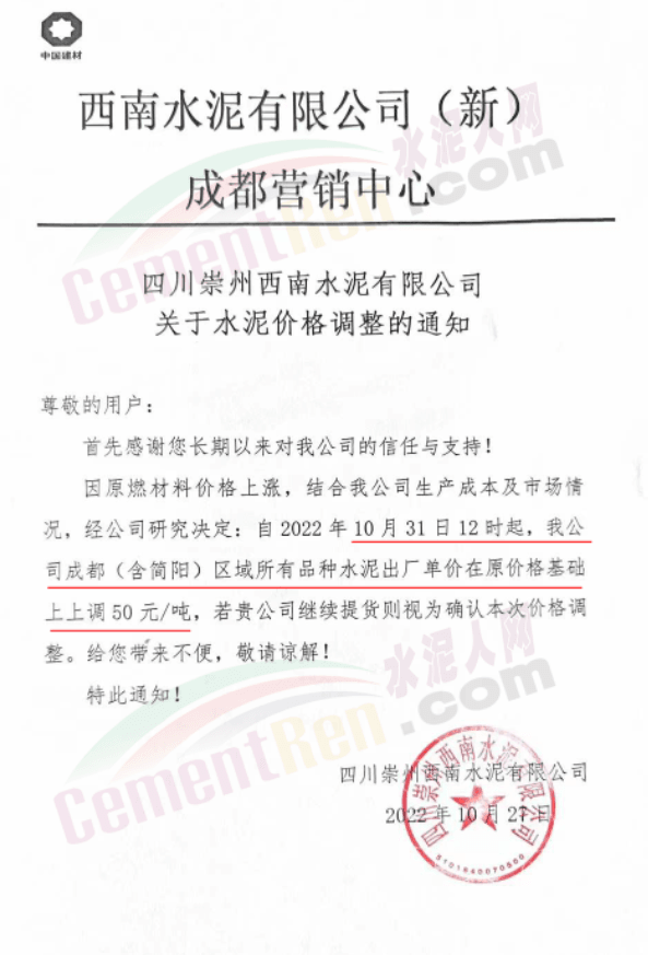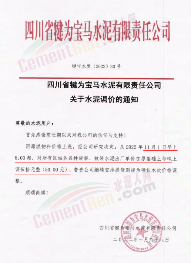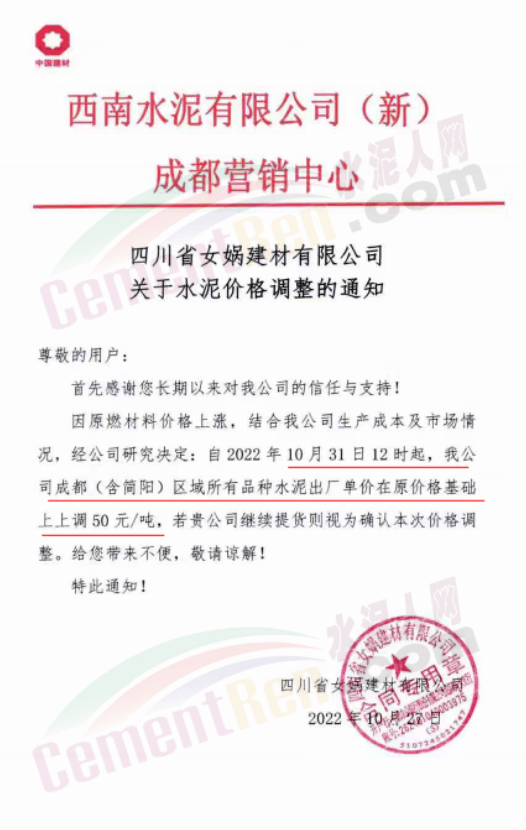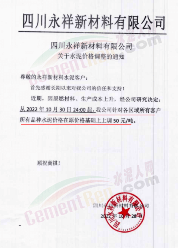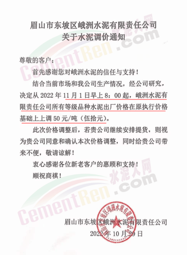 據(jù)了解,本輪調價是從10月30日起,包括粉磨站在內的多家水泥企業(yè)通知上調水泥價格50元/噸,熟料價格同步上調30元/噸。