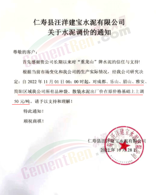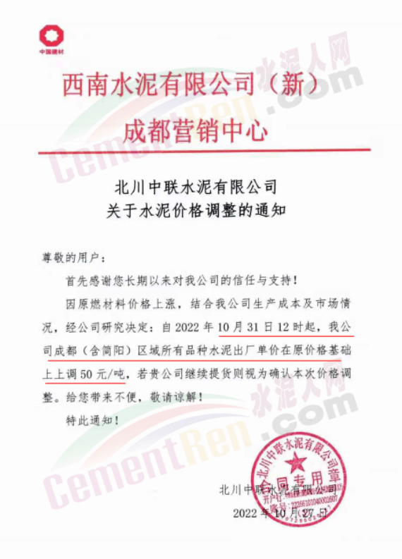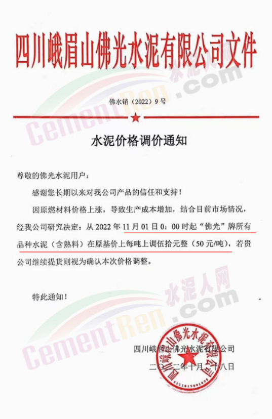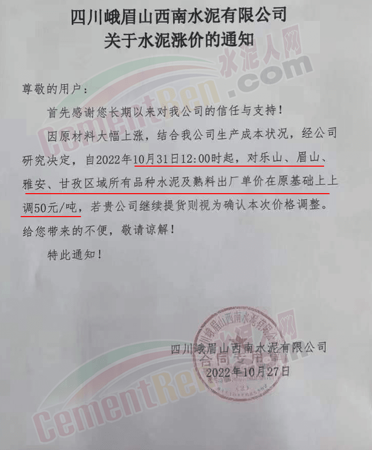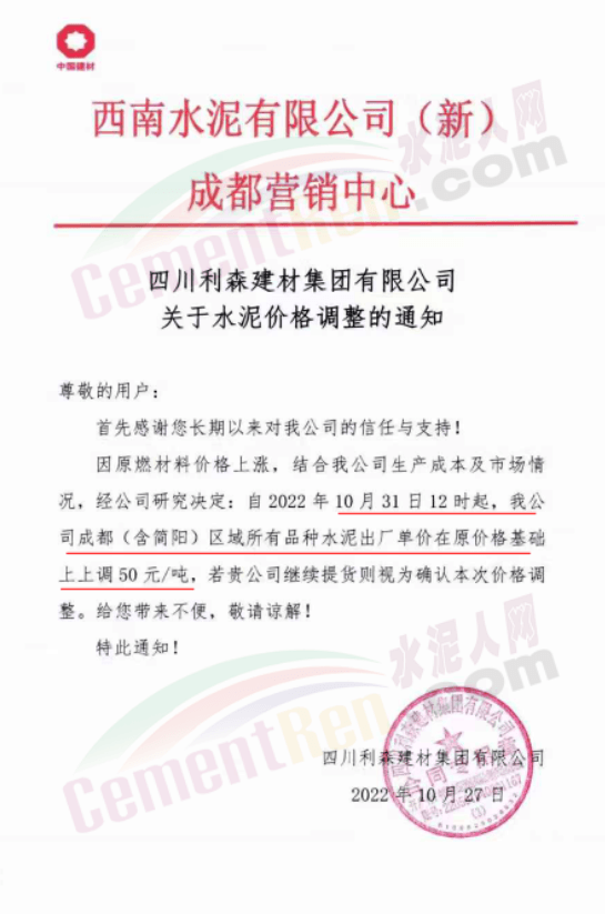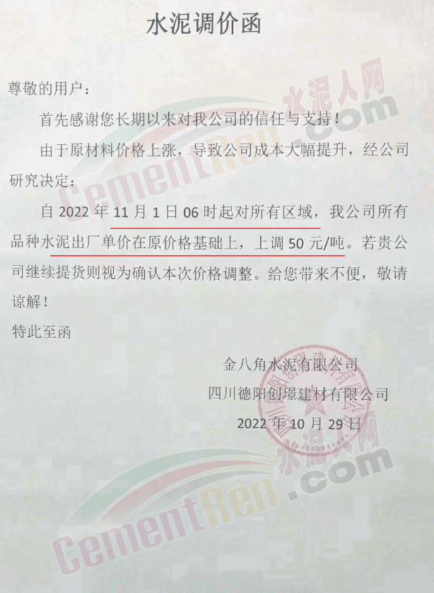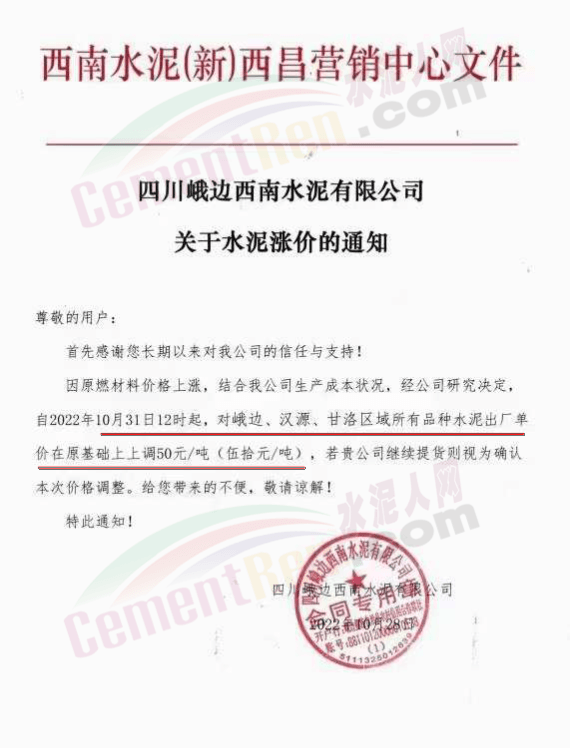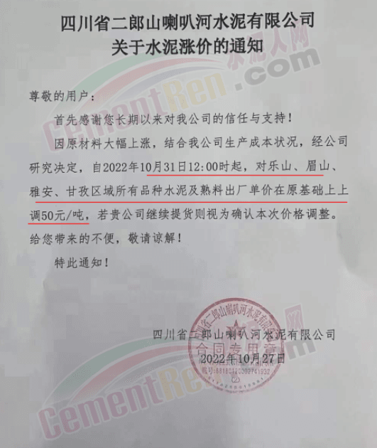 據(jù)了解,本輪調價是從10月30日起,包括粉磨站在內的多家水泥企業(yè)通知上調水泥價格50元/噸,熟料價格同步上調30元/噸。