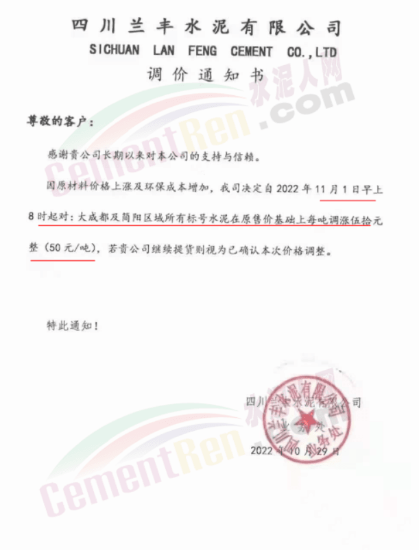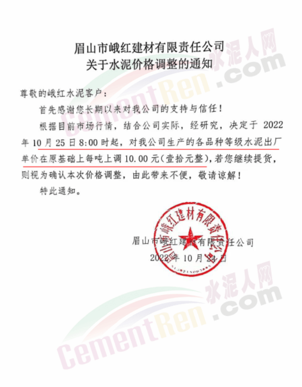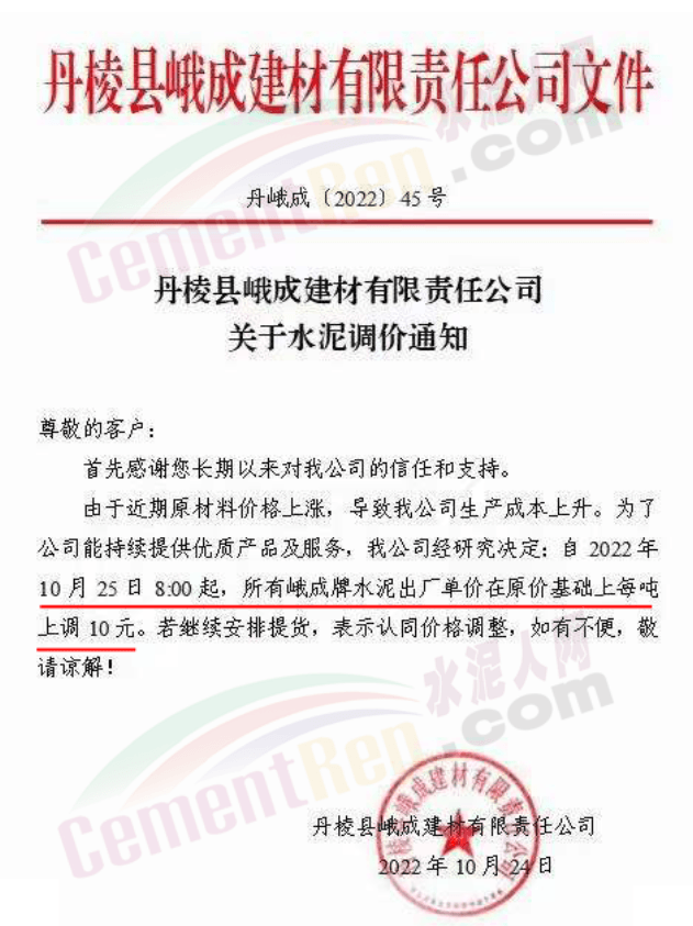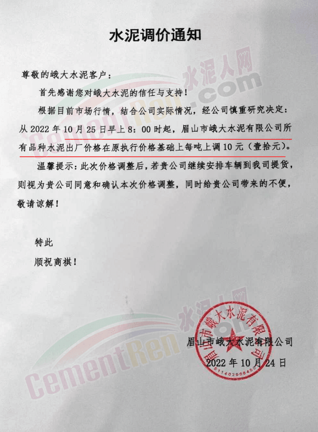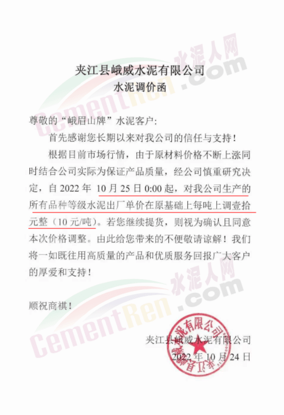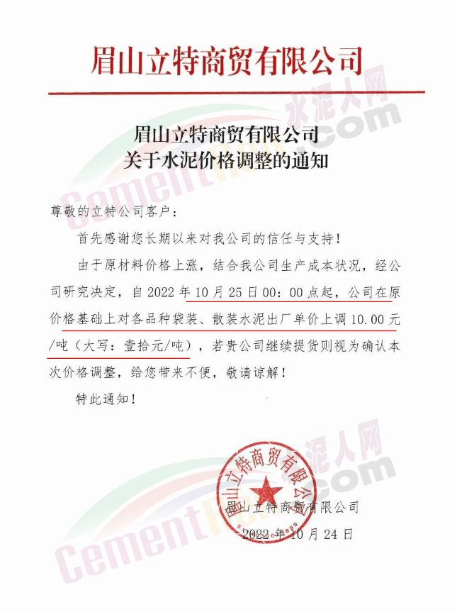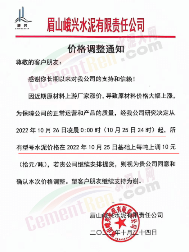 據(jù)了解,早在10月25日,包括粉磨站在內的多家水泥企業(yè)曾經(jīng)通知上調水泥價格10元/噸。
