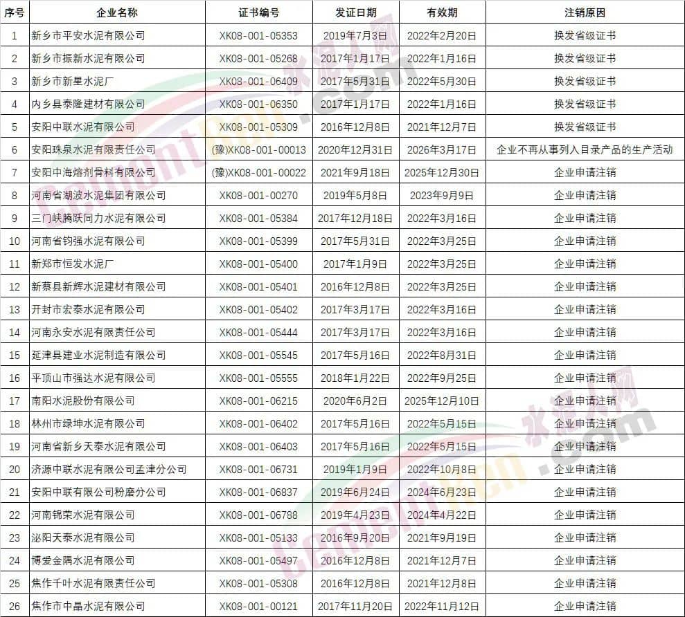 注銷!140多家水泥企業(yè)生產(chǎn)許可證被注銷!(附名單)