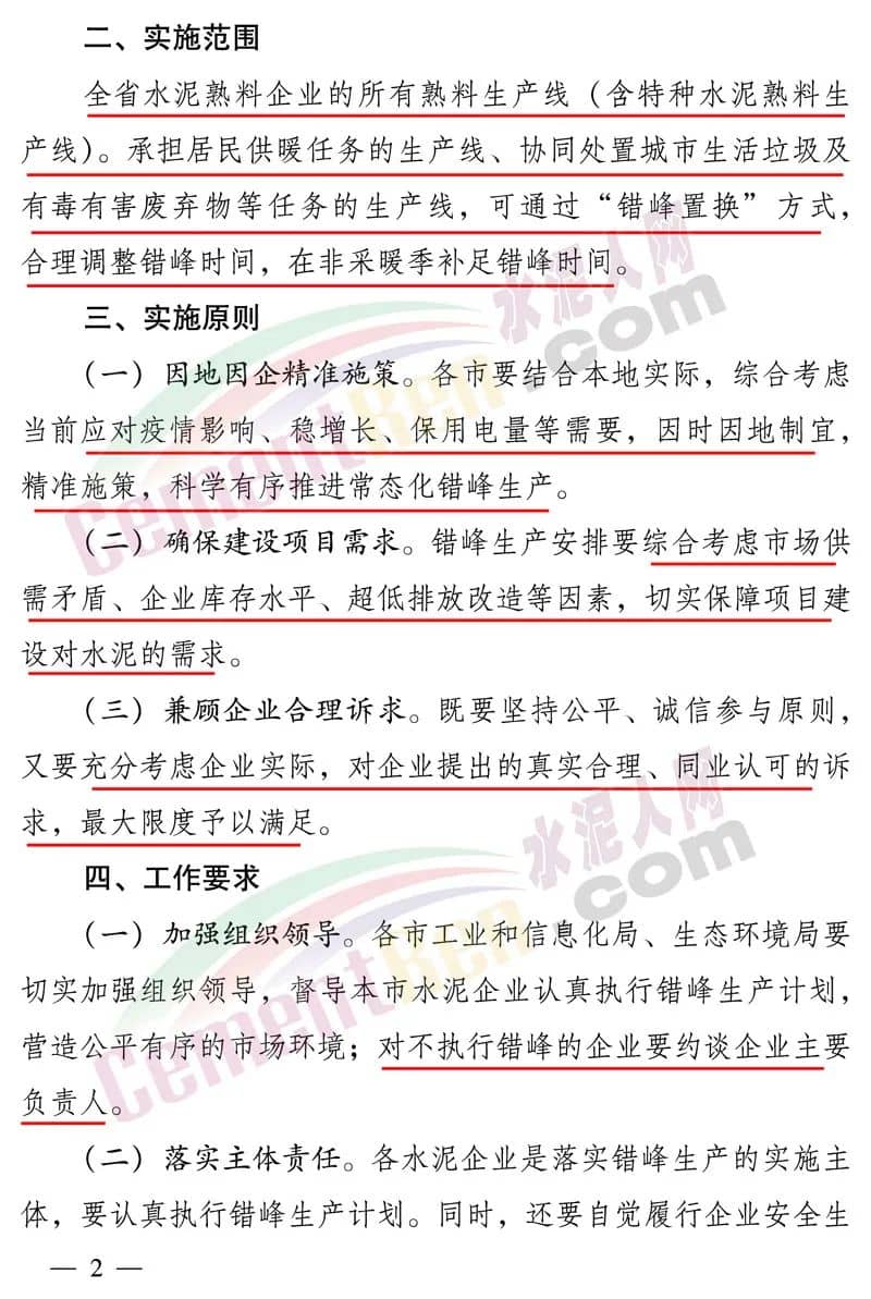 《通知》要求錯(cuò)峰生產(chǎn)安排要綜合考慮市場(chǎng)供需矛盾、企業(yè)庫存水平、超低排放改造等因素,切實(shí)保障項(xiàng)目建設(shè)對(duì)水泥的需求。同時(shí)兼顧企業(yè)合理訴求。既要堅(jiān)持公平、誠信參與原則,又要充分考慮企業(yè)實(shí)際,對(duì)企業(yè)提出的真實(shí)合理、同業(yè)認(rèn)可的訴求,最大限度予以滿足。對(duì)不執(zhí)行錯(cuò)峰的企業(yè)要約談企業(yè)主要負(fù)責(zé)人。同時(shí),還要自覺履行企業(yè)安全生產(chǎn)和環(huán)保主體責(zé)任,嚴(yán)格疫情防控,將設(shè)備檢修、環(huán)保技術(shù)改造、職工培訓(xùn)等與錯(cuò)峰生產(chǎn)結(jié)合安排,確保水泥常態(tài)化錯(cuò)峰生產(chǎn)平穩(wěn)有序、順利進(jìn)行。