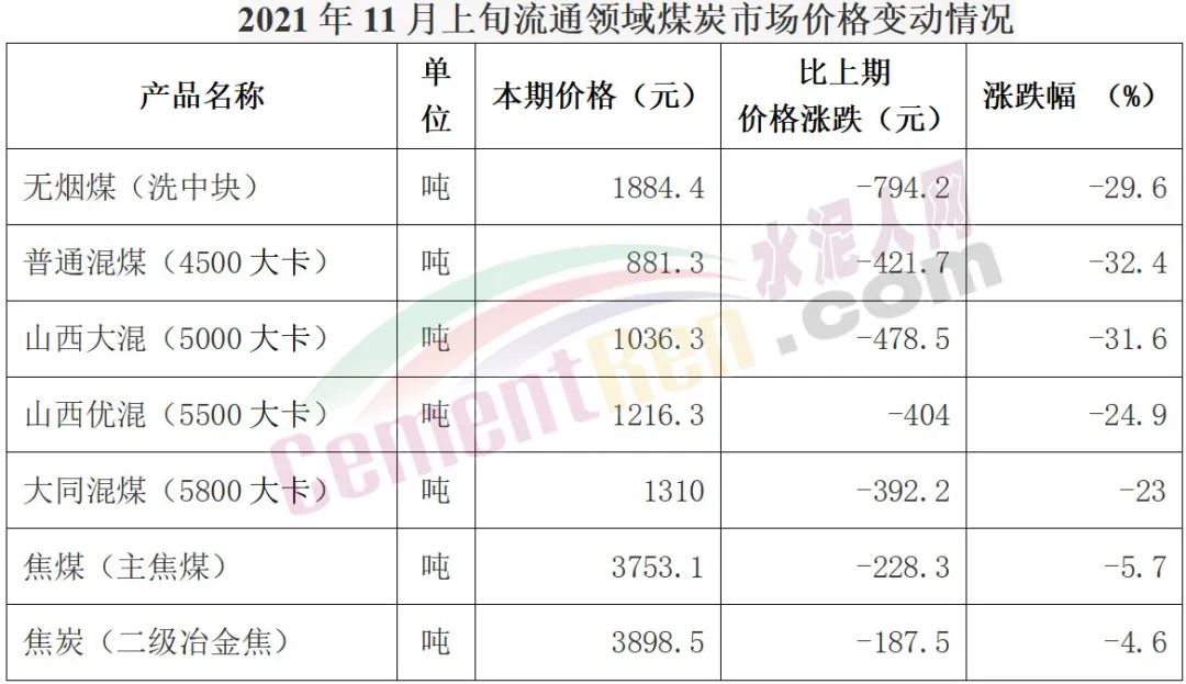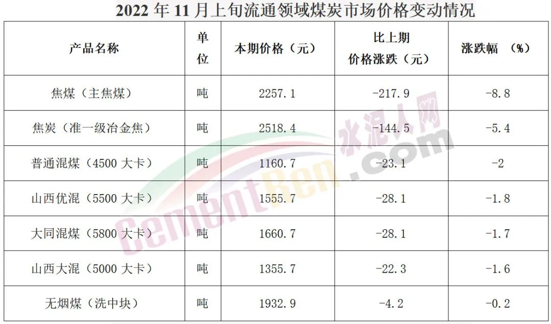 國家統(tǒng)計(jì)局11月14日公布的數(shù)據(jù)顯示,11月上旬全國動力煤價格整體下跌。普通混煤(4500大卡)報1160.7元/噸,下跌23.1元/噸,較10月下旬下跌2%;