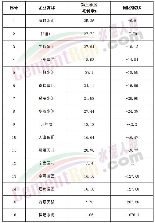 煤價高位持續(xù),水泥低價磨底,16家上市水泥企業(yè)毛利率同比下跌