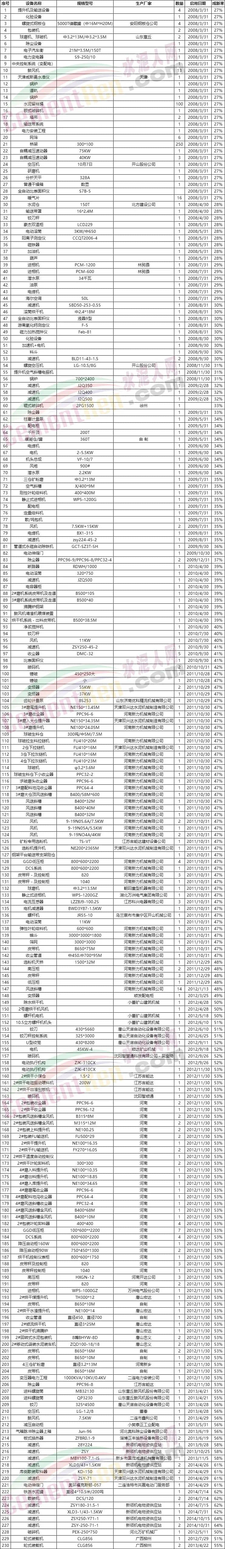 水泥人網(wǎng)注意到公告文件固定資產(chǎn)—機(jī)器設(shè)備評估明細(xì)表中包含水泥生產(chǎn)用球磨機(jī)、碎碎機(jī)、減速機(jī)、提升機(jī)、拉鏈機(jī)、收塵器、風(fēng)機(jī)、選粉機(jī)、皮帶機(jī)、烘干機(jī)、皮帶秤等230件設(shè)備。