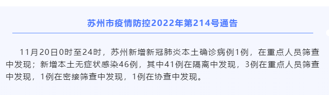 江蘇蘇州市通報:11月21-22日兩日內(nèi),江蘇蘇州市共新增新冠肺炎本土確診病例2例,新增本土無癥狀感染100例;其中24人居住或去過工地,涉及金地翡翠星辰花園項目工地、吳江區(qū)龐南路科技園工地,吳中區(qū)光福鎮(zhèn)福利路橫涇建設(shè)工地。