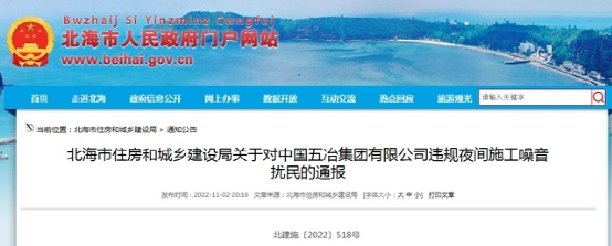 廣西北海市住建局通報中國五冶集團有限公司違規(guī)夜間施工噪音擾民