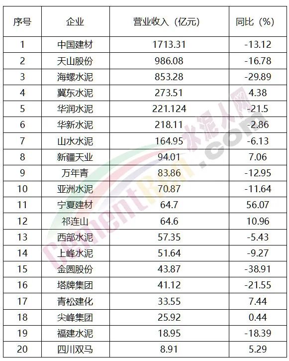 榜單一:2022年前三季度水泥企業(yè)營收排行榜