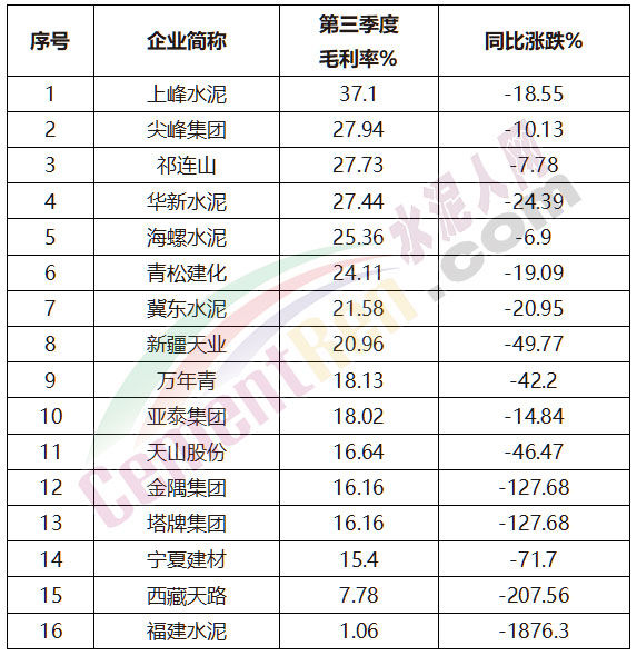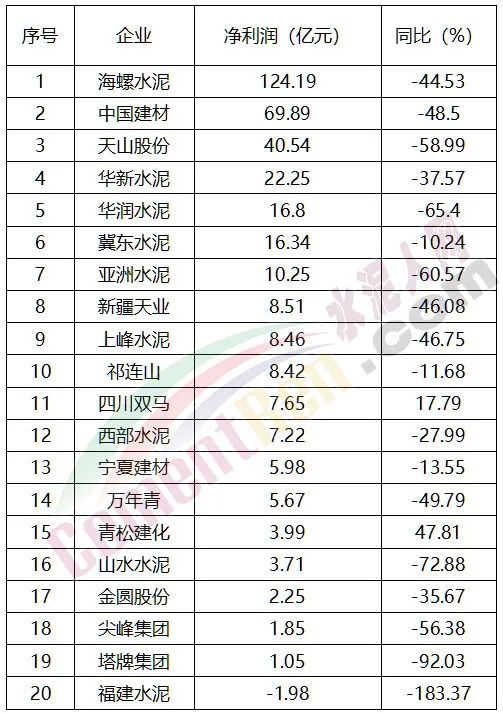 榜單二:2022年前三季度水泥企業(yè)凈利潤排行榜