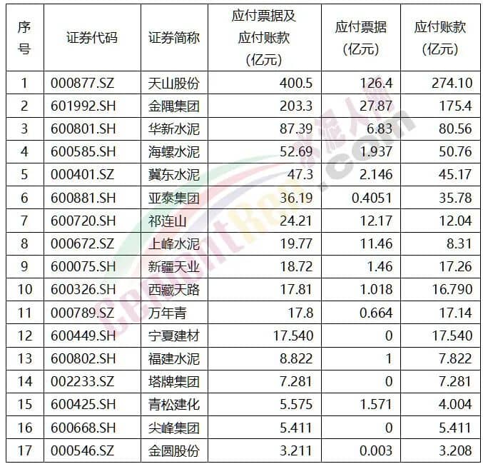 榜單五:截至2022年第三季度末應(yīng)付賬款及應(yīng)付票據(jù)排行榜