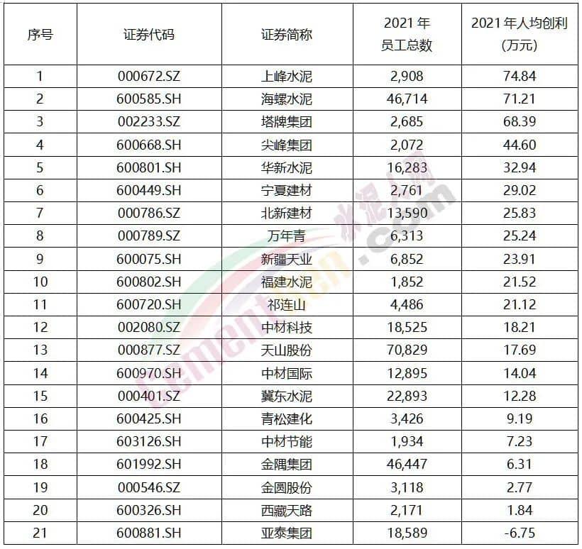榜單十:2021年各大上市企業(yè)員工創(chuàng)利排行榜