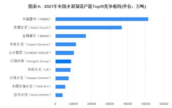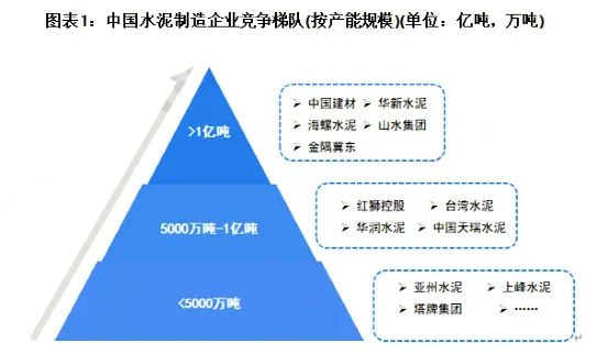 各大龍頭企業(yè)按年產(chǎn)能劃分,可分為3個競爭梯隊。其中,年產(chǎn)能大于1億噸的企業(yè)有中國建材 、海螺水泥、華新水泥、山水水泥、金隅冀東;年產(chǎn)能在5000萬噸至1億噸之間的企業(yè)有紅獅、臺泥、華潤、天瑞等,其余企業(yè)的年產(chǎn)能多在5000萬噸以下。其中中國建材、海螺水泥、金隅冀東三大龍頭占據(jù)了水泥行業(yè)總產(chǎn)能的37.69%,產(chǎn)能排名前十的企業(yè)合計占比達(dá)57%。且絕大多數(shù)都有在利用并購重組等方式增強(qiáng)自身競爭力。