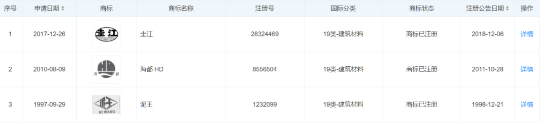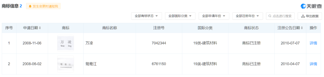 企業(yè)商標(biāo)注冊(cè)信息顯示,旗下共有“萬(wàn)凌”和“鴛鴦江”兩個(gè)注冊(cè)品牌,并沒(méi)有不合格品所列的“粵華水泥”注冊(cè)商標(biāo)。