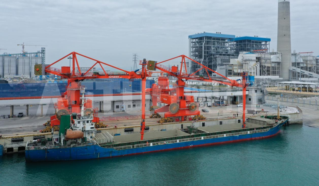 One time success!HongShi Group Guangzhou Port Maoming Terminal ship unloader successfully trial production!