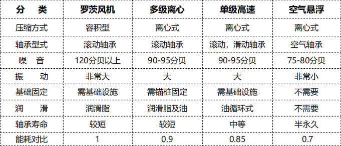 空浮風機比傳統(tǒng)羅茨風機節(jié)能25%~35%,比多級離心風機節(jié)能10%~20%,是目前最節(jié)能、最高效的高速流體設(shè)備。