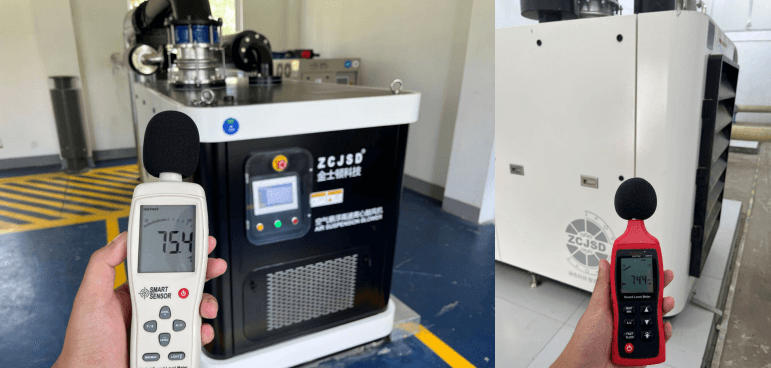 我們的設(shè)備運行噪音在80分貝以內(nèi),解決了羅茨風機、多級離心風機、單級高速風機等噪音極高的問題。