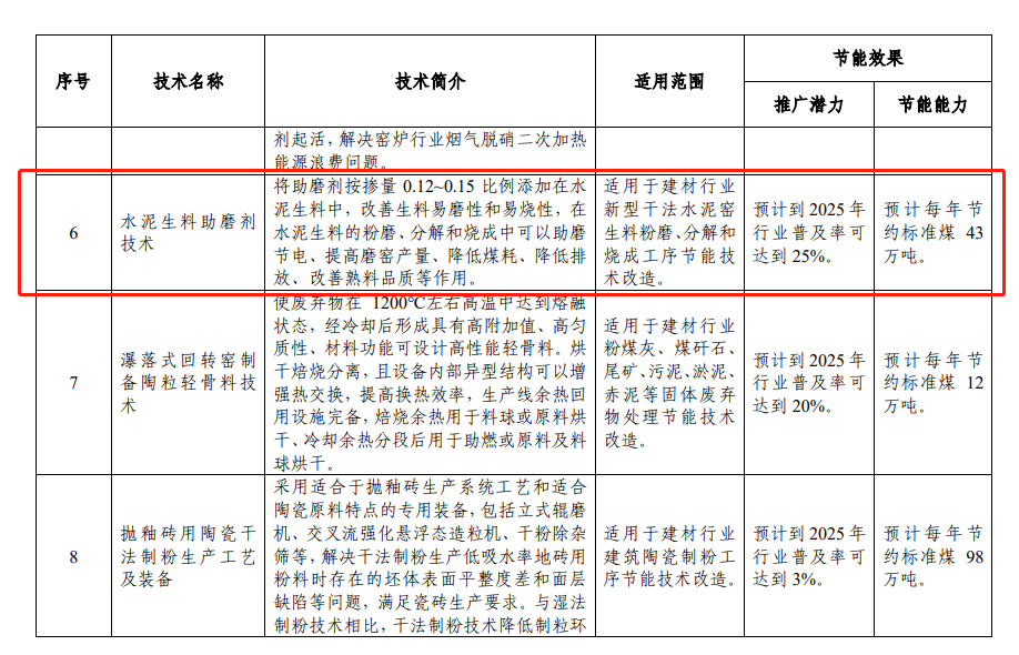 為加快推廣應(yīng)用先進適用節(jié)能技術(shù)裝備,促進企業(yè)節(jié)能降碳、降本增效,工信部近日發(fā)布了《國家工業(yè)和信息化領(lǐng)域節(jié)能技術(shù)裝備推薦目錄(2022年版)》,湖南昌迪環(huán)境科技有限公司(以下簡稱“湖南昌迪”)申報的水泥生料助磨劑應(yīng)用技術(shù)納入建材行業(yè)節(jié)能提效技術(shù)裝備推薦。