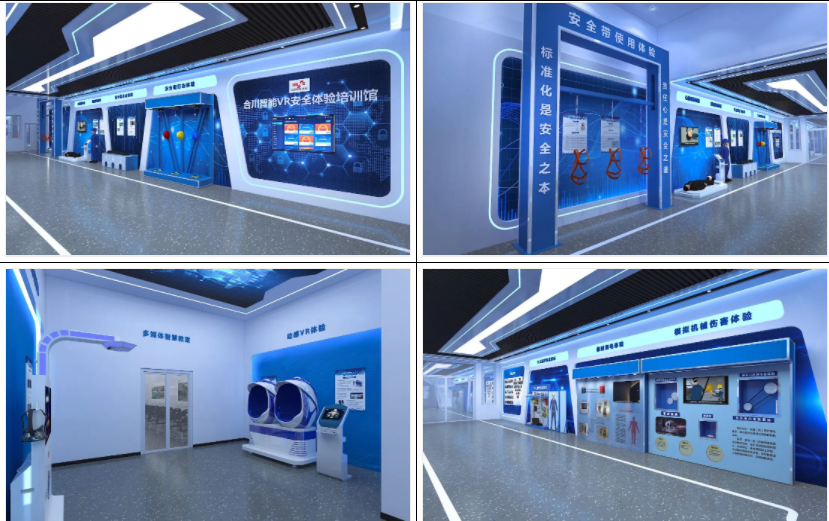 金隅冀東水泥合川有限公司智能VR安全體驗培訓(xùn)館分為前廳、安全防護認知區(qū)、事故傷害實訓(xùn)區(qū)、多媒體智慧教室、VR事故體驗區(qū)共五大功能區(qū),采用“正向?qū)嵱?xùn)、逆向體驗、安全互動”的安全培訓(xùn)創(chuàng)新模式。