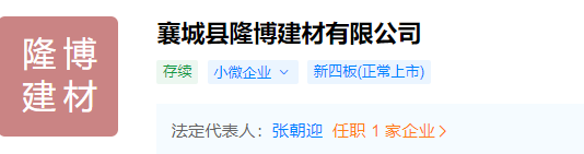 據(jù)查詢,襄城縣隆博建材有限公司為新四板上市的小微企業(yè),法定代表人張朝迎。企業(yè)經(jīng)營范圍為水泥粉磨生產(chǎn),建材銷售。企業(yè)注冊地址為河南省許昌市襄城縣庫莊鄉(xiāng)西沈村。