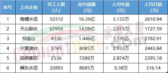 照此核算,A股已公布業(yè)績(jī)的6家上市企業(yè)中,5家企業(yè)人均月薪均在2800元以下,平均月薪2392元。冀東水泥員工人數(shù)從2021年至今一直保持22893人,人均月薪僅為316.14元。