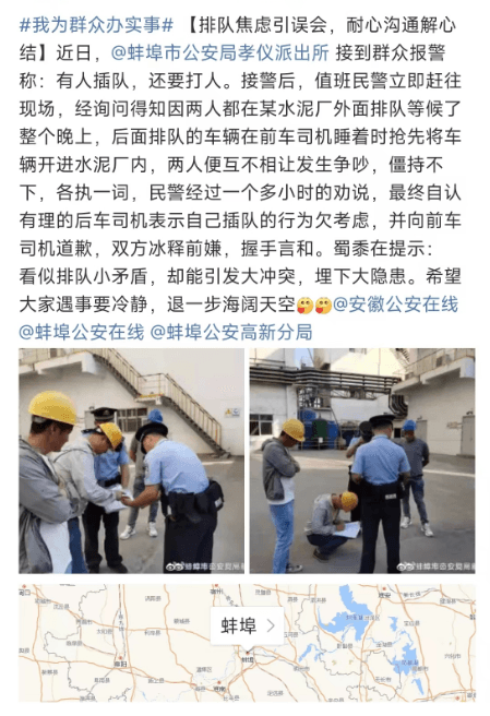 因兩人都在某水泥廠外面排隊等候了整個晚上,后面排隊的車輛在前車司機睡著時搶先將車輛開進水泥廠內(nèi),兩人便互不相讓發(fā)生爭吵,僵持不下,各執(zhí)一詞。