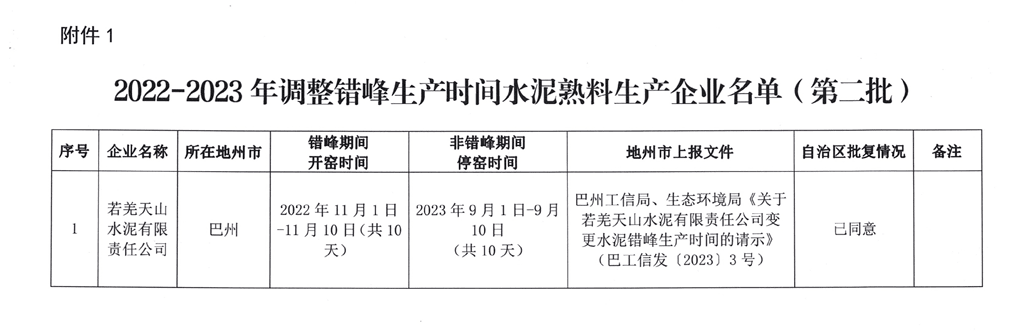 寧夏回族自治區(qū)要求全區(qū)所有水泥熟料生產(chǎn)企業(yè)2022年11月1日~2023年3月10日期間錯(cuò)峰生產(chǎn)130天,時(shí)限內(nèi)未完成錯(cuò)峰生產(chǎn)的天數(shù)需在2023年6月底前補(bǔ)足。