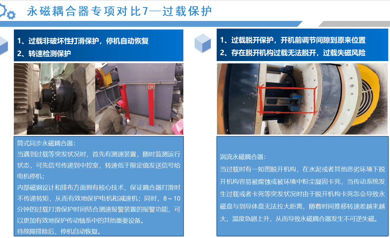 從以上的應(yīng)用案例來(lái)看,同步永磁耦合器的應(yīng)用效果會(huì)比較明顯,接下來(lái),我們通過(guò)數(shù)據(jù)對(duì)比的形式,具體分析筒式同步全永磁耦合器與渦流永磁耦合器優(yōu)劣勢(shì):