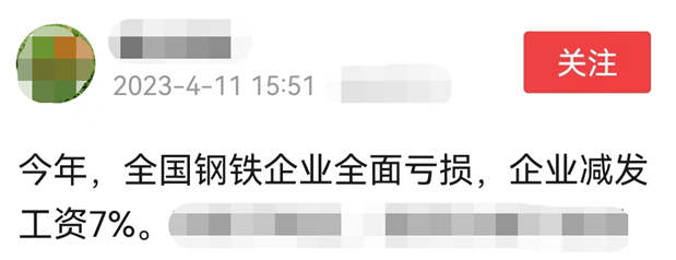 今年,全國(guó)鋼鐵企業(yè)全面虧損,企業(yè)減發(fā)工資7%。