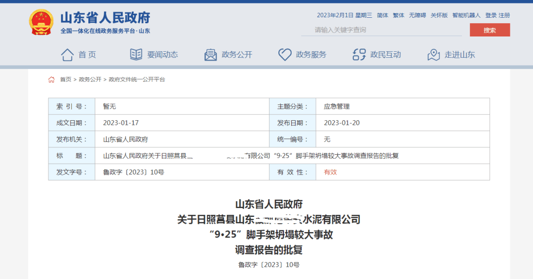 2023年1月,山東省應(yīng)急管理廳公布該起事故的事故調(diào)查報(bào)告,山東省人民政府對(duì)事故調(diào)查報(bào)告作出批復(fù),同意事故調(diào)查組對(duì)事故的原因分析和責(zé)任認(rèn)定。