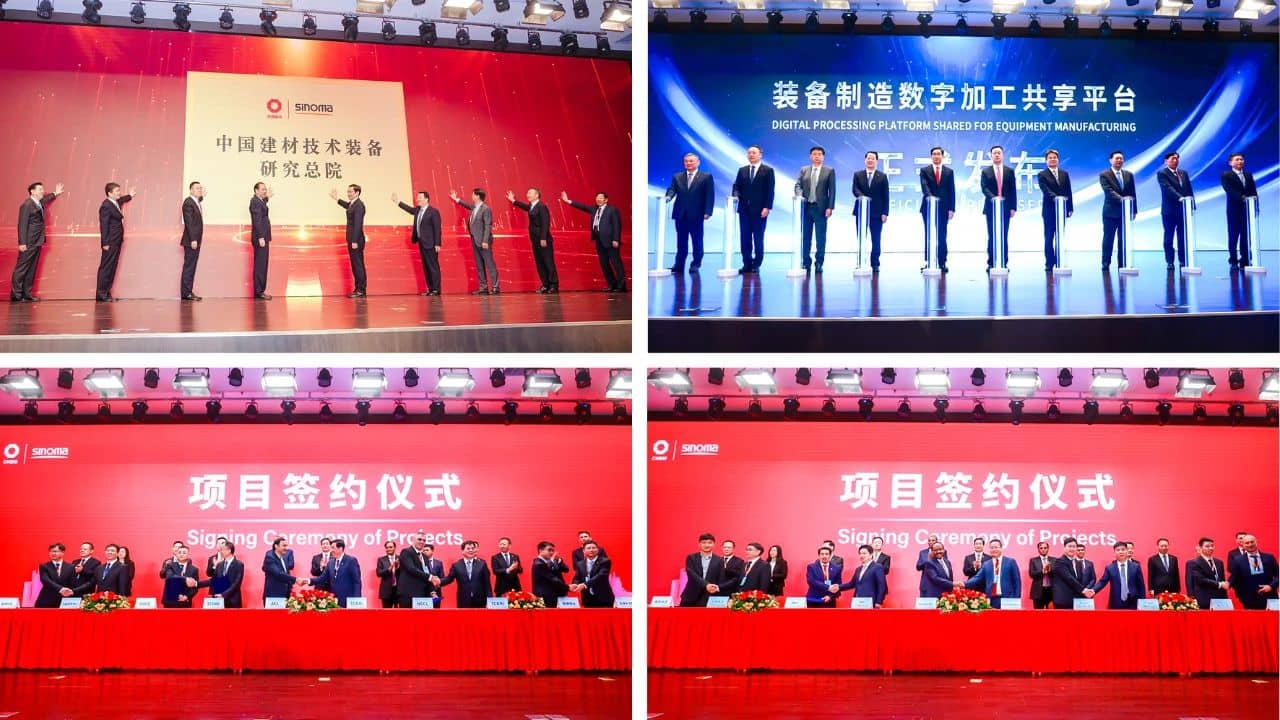 5月17-18日,中國(guó)建材集團(tuán)黨委書(shū)記、董事長(zhǎng),中國(guó)建材股份黨委書(shū)記、董事長(zhǎng)周育先受邀參加第七屆世界智能大會(huì)開(kāi)幕式,并出席數(shù)字賦能制造峰會(huì)暨中材國(guó)際首屆水泥綠色智能發(fā)展峰會(huì)發(fā)表致辭,為中國(guó)建材技術(shù)裝備研究總院揭牌,見(jiàn)證中材國(guó)際項(xiàng)目集體簽約和裝備制造數(shù)字加工共享平臺(tái)發(fā)布。中國(guó)建材集團(tuán)黨委常委、副總經(jīng)理,中國(guó)建材股份黨委副書(shū)記、總裁魏如山;中國(guó)工程院院士,中國(guó)建材集團(tuán)總工程師,凱盛科技董事長(zhǎng)彭壽;中國(guó)建材股份黨委副書(shū)記,中材國(guó)際黨委書(shū)記、董事長(zhǎng)劉燕;中國(guó)建材股份黨委常委,新天山水泥黨委書(shū)記、副董事長(zhǎng)肖家祥;中材國(guó)際黨委副書(shū)記、總裁印志松;中材國(guó)際副總裁、天津水泥院董事長(zhǎng)何小龍等出席峰會(huì)。