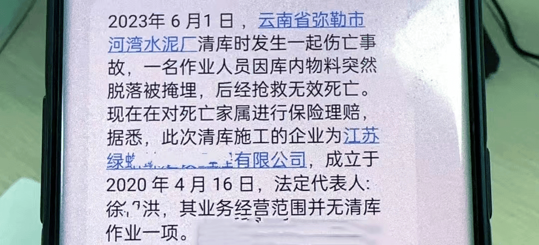 據(jù)水泥人網(wǎng)了解,6月1日,江蘇綠蜘蛛建設(shè)工程有限公司一員工在云南彌勒市河灣水泥廠清庫(kù)作業(yè)時(shí)發(fā)生事故,后經(jīng)搶救無(wú)效死亡。