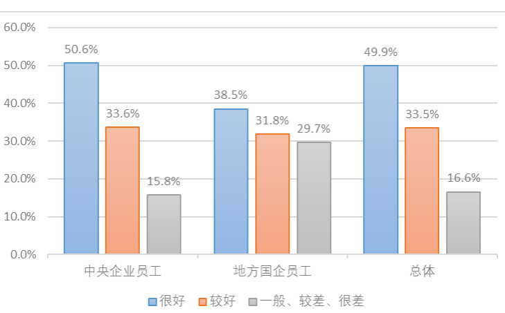 3.部分國(guó)企黨組織的海外品牌傳播能力有待進(jìn)一步提升。在國(guó)企深度參與國(guó)際市場(chǎng)的背景下,部分國(guó)企國(guó)際化傳播經(jīng)驗(yàn)不足、海外宣傳能力不足的問(wèn)題愈發(fā)突出,部分國(guó)企黨組織出現(xiàn)一定程度的功能缺位。國(guó)企“走出去”與品牌傳播建設(shè)并不同步,品牌傳播中的弱點(diǎn)已經(jīng)成為國(guó)企“走出去”過(guò)程中的巨大隱患。相關(guān)研究指出,中國(guó)國(guó)企“傳播與公關(guān)能力不足,媒體溝通、政府公關(guān)有待加強(qiáng)”“國(guó)際化營(yíng)銷(xiāo)經(jīng)驗(yàn)還比較欠缺”。課題調(diào)研結(jié)果顯示,受訪(fǎng)的中央企業(yè)職工中,只有50.6%的員工認(rèn)為企業(yè)黨組織在領(lǐng)導(dǎo)打造世界一流品牌過(guò)程中作用發(fā)揮得很好,還有15.8%的員工認(rèn)為做得一般、較差或很差,而地方國(guó)企這兩項(xiàng)比例分別為38.5%和29.7%(見(jiàn)圖5)??梢?jiàn),國(guó)企職工對(duì)黨組織領(lǐng)導(dǎo)打造世界一流品牌的表現(xiàn)總體上認(rèn)可度不及預(yù)期。