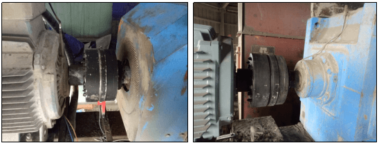 無獨(dú)有偶,山東聯(lián)合王晁水泥有限公司(以下簡(jiǎn)稱“王晁水泥”)亦在其500kW輥壓機(jī)傳動(dòng)系統(tǒng)中采用了江蘇磁谷同步永磁耦合器新型柔性傳動(dòng)保護(hù)裝置,運(yùn)行效果良好,振動(dòng)大幅減小(現(xiàn)場(chǎng)測(cè)量振動(dòng)值:電機(jī)端水平2.3 mm/s,垂直0.9 mm/s,軸0.2 mm/s;減速機(jī)端水平0.4 mm/s,垂直0.2 mm/s,軸0.4mm/s)。