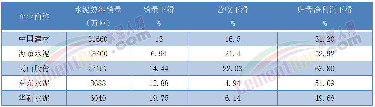 對比中國建材、海螺水泥、天山股份、冀東水泥、華新水泥五家企業(yè)銷量下滑幅度可見,海螺水泥的銷量下滑相對較小。