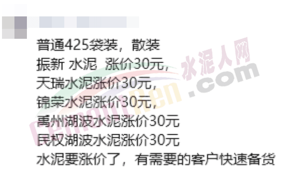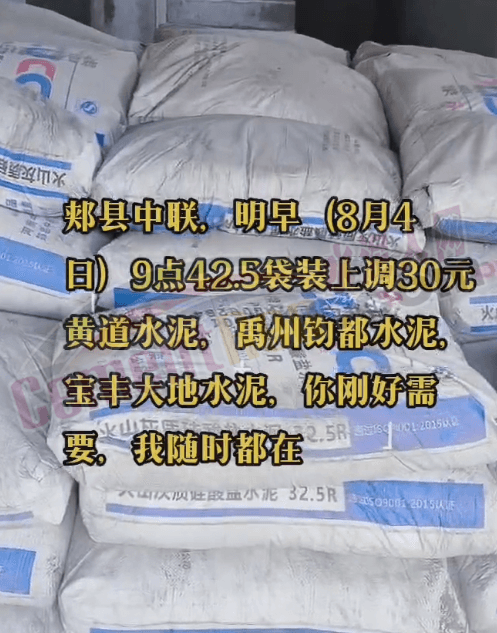 日前,有經(jīng)銷(xiāo)商通知,郟縣中聯(lián)通知自8月4日9時(shí)起42.5袋裝上調(diào)30元/噸,其他企業(yè)將陸續(xù)跟漲。消息一出,部分企業(yè)門(mén)前開(kāi)始排起長(zhǎng)隊(duì)。