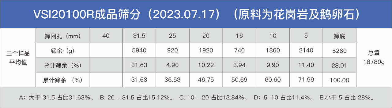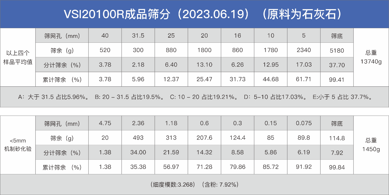 表:硬巖破碎成品的化驗結(jié)果