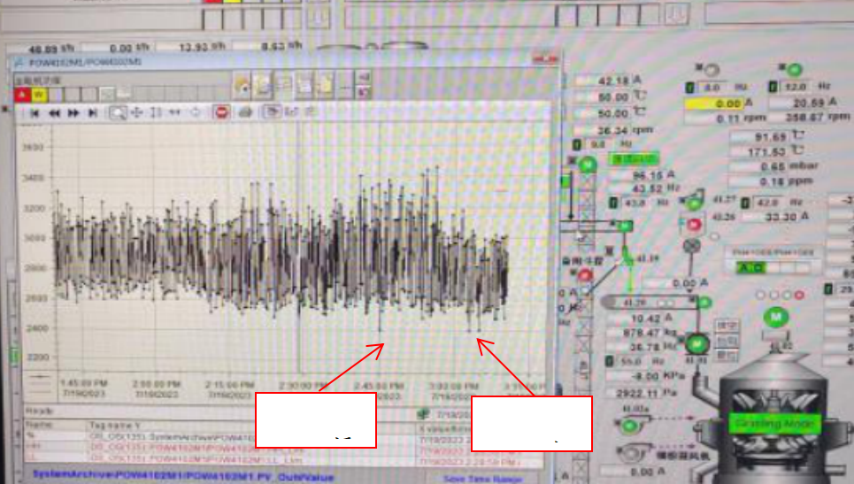 生料助磨劑添加前后生料磨運(yùn)行功率變化