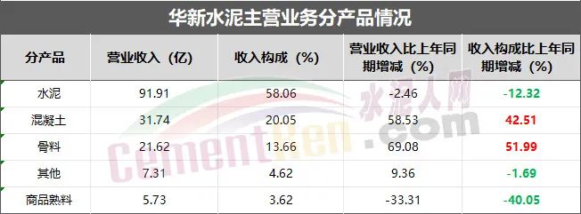 今年上半年,華新水泥混凝土營業(yè)收入同比去年增加58.53%,營收占比同比去年增加42.51%。骨料營業(yè)收入同比去年增加69.08%,營收占比同比去年增加51.99%。水泥及商品熟料營收及收入占比同比去年均有所減少。