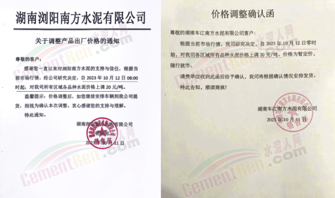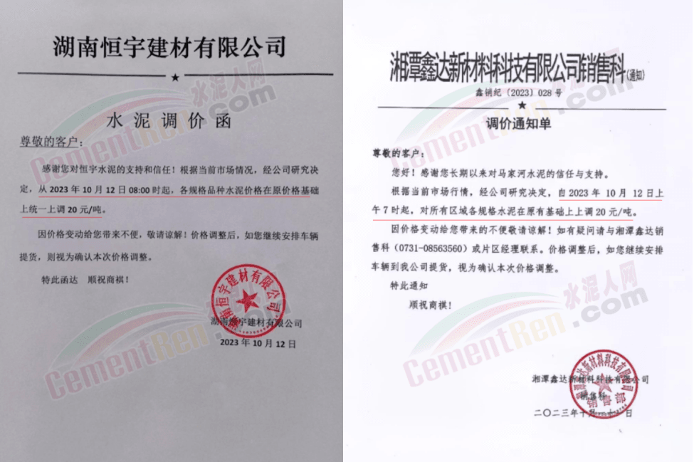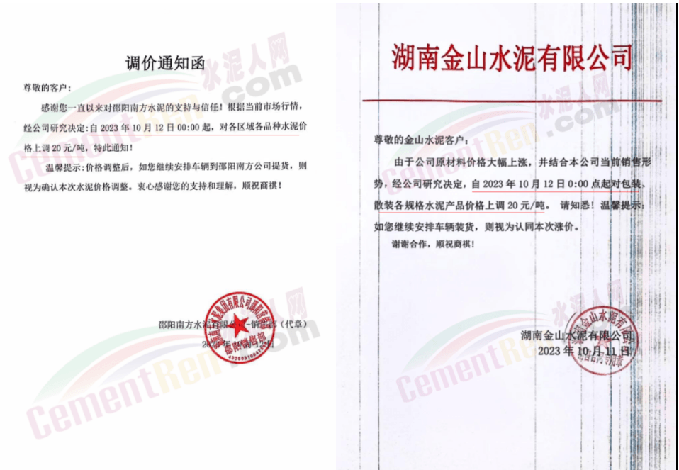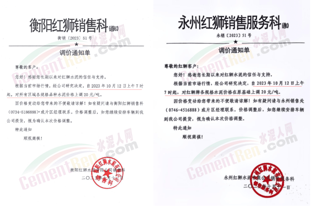 湖南區(qū)域中材株洲、中材湘潭、瀏陽(yáng)南方、車江南方、邵陽(yáng)南方、華新水泥株洲公司、華新水泥冷水江公司、衡陽(yáng)紅獅、永州紅獅、金山水泥、恒宇建材、湘潭鑫達(dá)新材料等企業(yè)通知,所有區(qū)域、所有品種水泥價(jià)格12日起上調(diào)20元/噸。