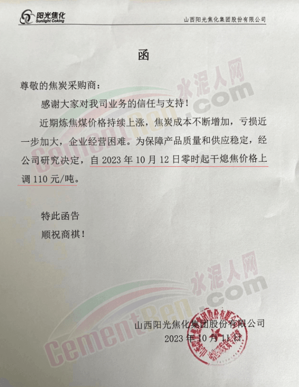 12日,多家焦煤企業(yè)通知,焦炭?jī)r(jià)格上調(diào)110元/噸。