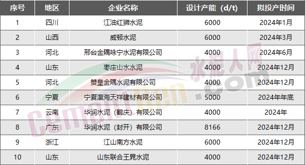 計劃于2023年、2024年點火投產(chǎn)水泥熟料生產(chǎn)線項目