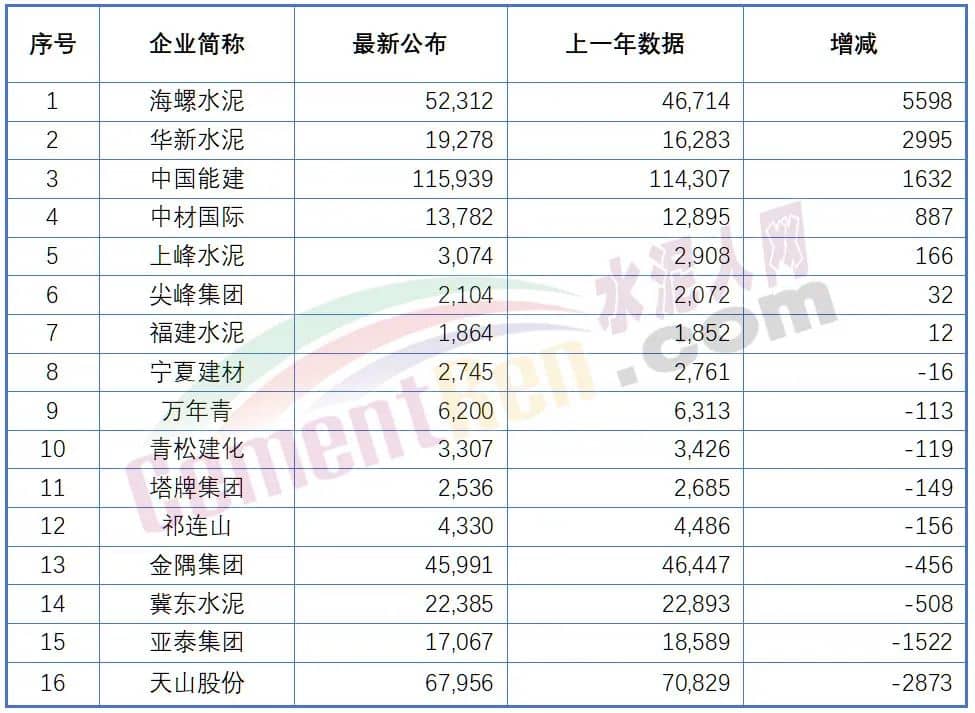 天山股份生產(chǎn)減員超3000人,海螺水泥生產(chǎn)增員超2000人
